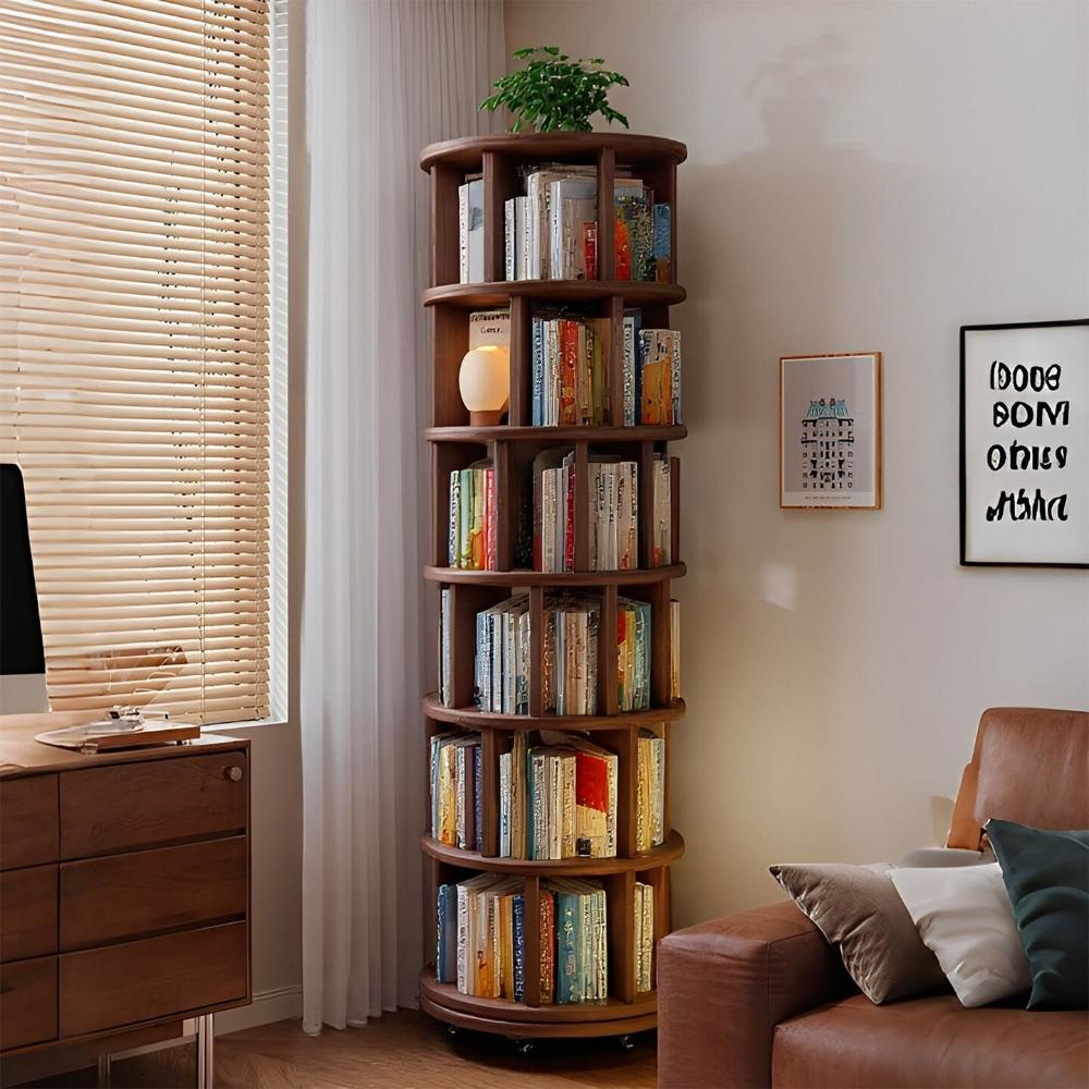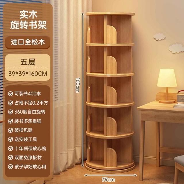 工廠直髮 實木旋轉書架360度書櫃圓形置物架客廳轉角立式收納架學生儲物架