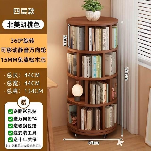 工廠直髮 實木旋轉書架360度書櫃圓形置物架客廳轉角立式收納架學生儲物架