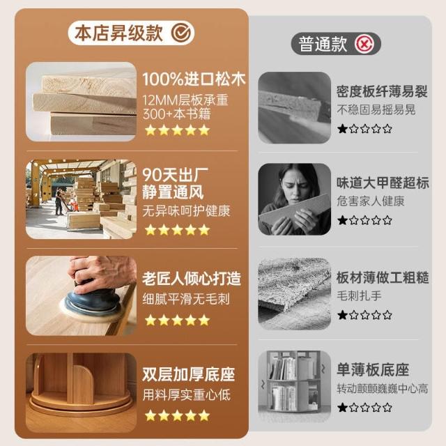 工廠直髮 實木旋轉書架360度書櫃圓形置物架客廳轉角立式收納架學生儲物架