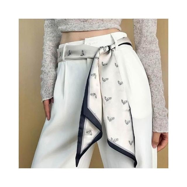 腰帶絲巾 黑白條紋 裝飾襯衫 圍巾飄帶 百搭新款 領巾 髮帶 薄圍巾 女領巾