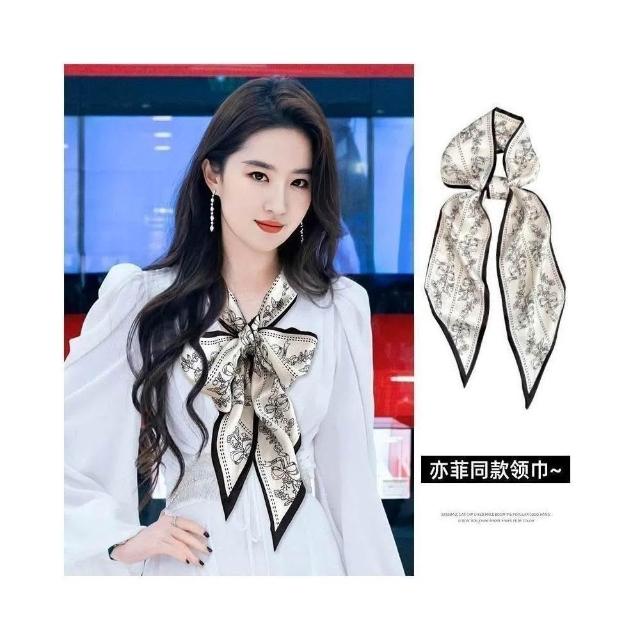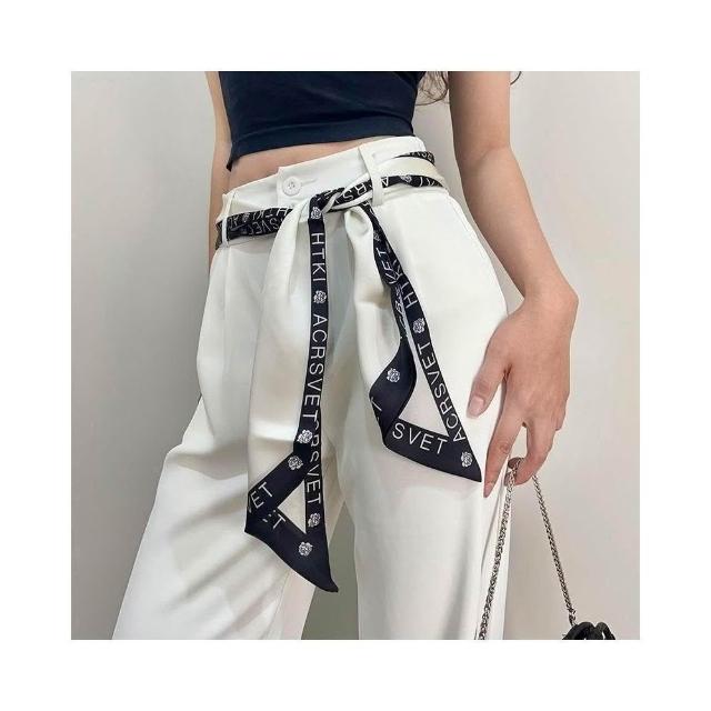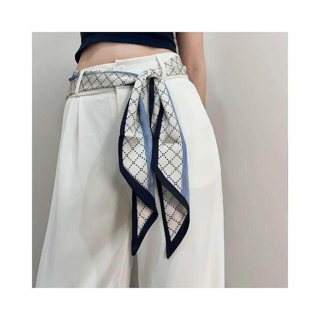 腰帶絲巾 黑白條紋 裝飾襯衫 圍巾飄帶 百搭新款 領巾 髮帶 薄圍巾 女領巾