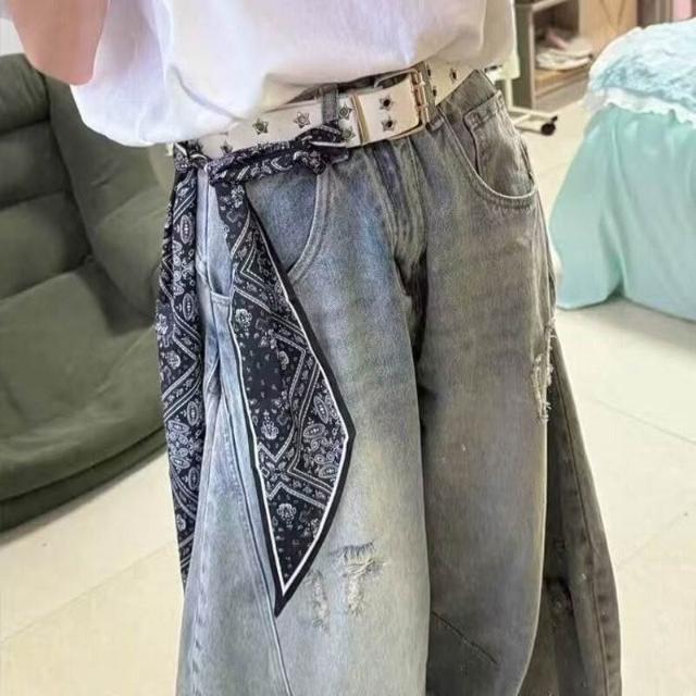 腰帶絲巾 黑白條紋 裝飾襯衫 圍巾飄帶 百搭新款 領巾 髮帶 薄圍巾 女領巾