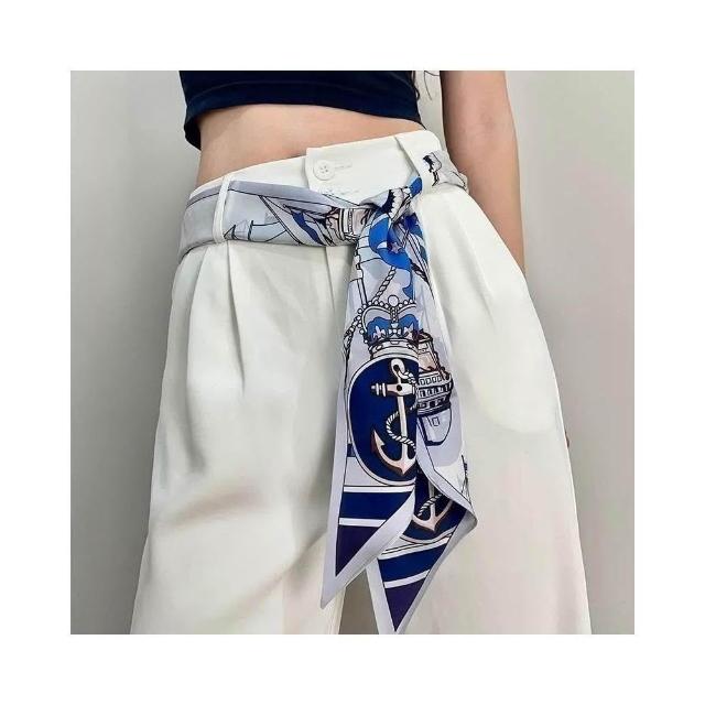 腰帶絲巾 黑白條紋 裝飾襯衫 圍巾飄帶 百搭新款 領巾 髮帶 薄圍巾 女領巾