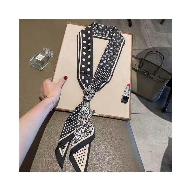 腰帶絲巾 黑白條紋 裝飾襯衫 圍巾飄帶 百搭新款 領巾 髮帶 薄圍巾 女領巾