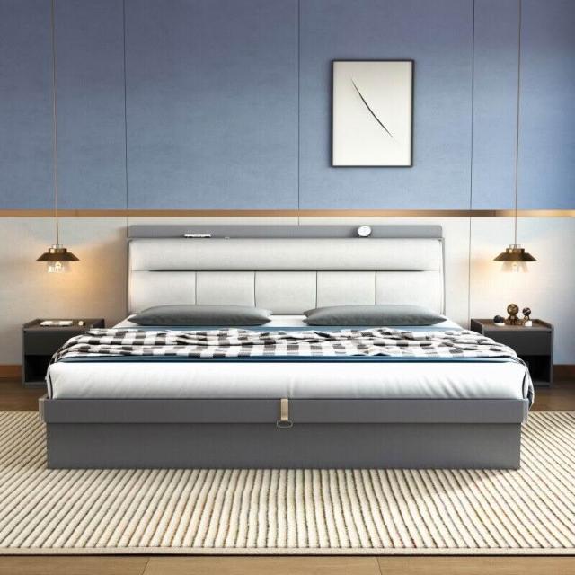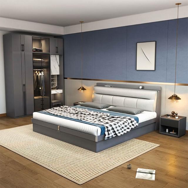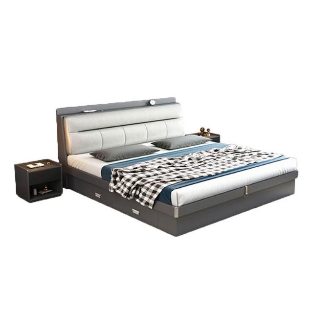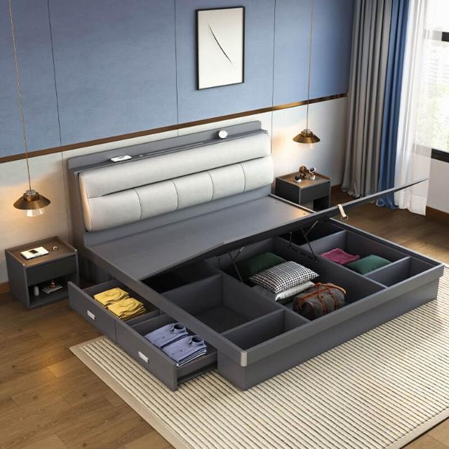 工廠直髮 北歐板式床高箱儲物床1.8m主臥雙人床1.5m現代簡約氣動收納箱體床