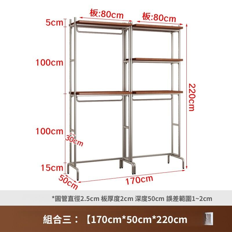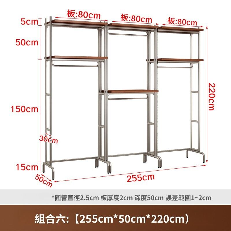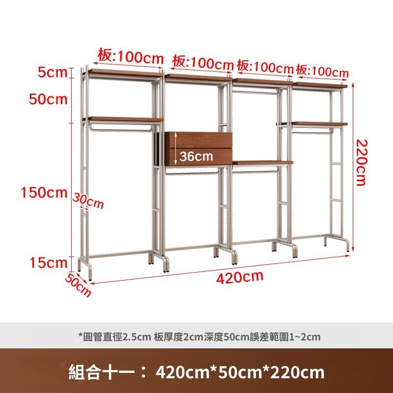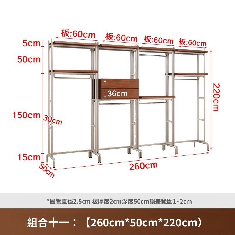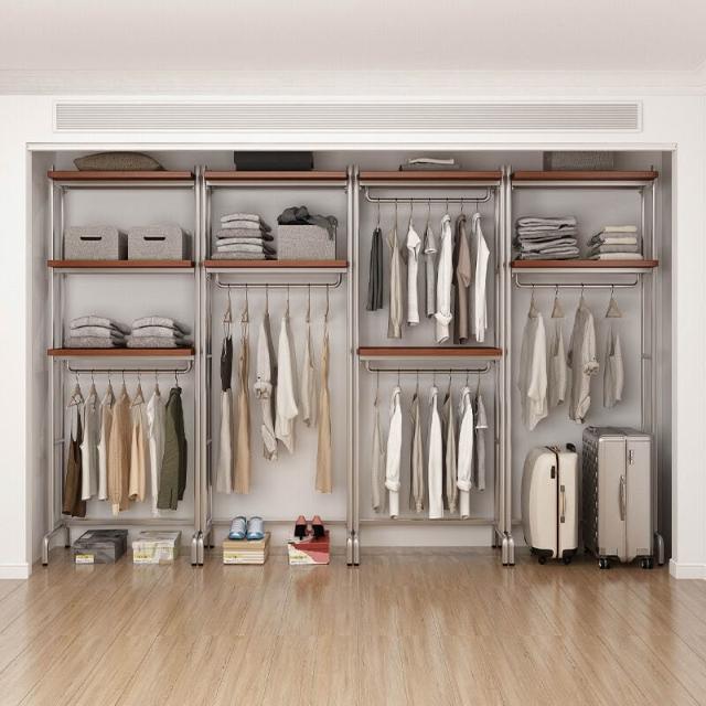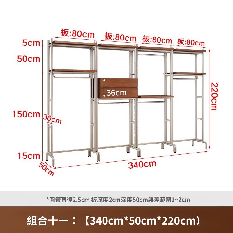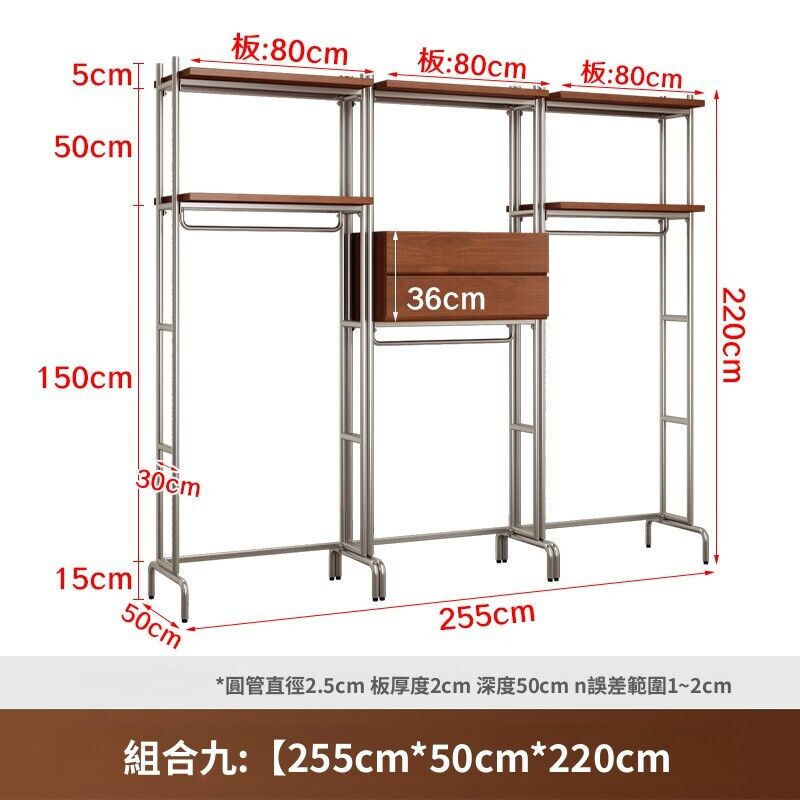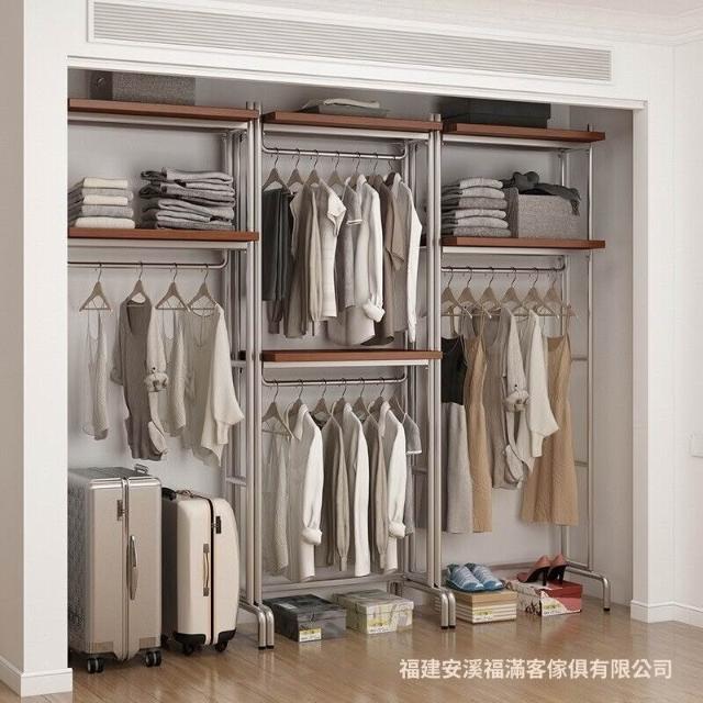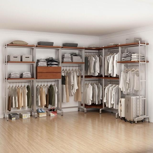 合枋 開放式衣櫃北歐鐵藝loft步入式衣架落地臥室衣櫥金屬衣帽間置物架 368