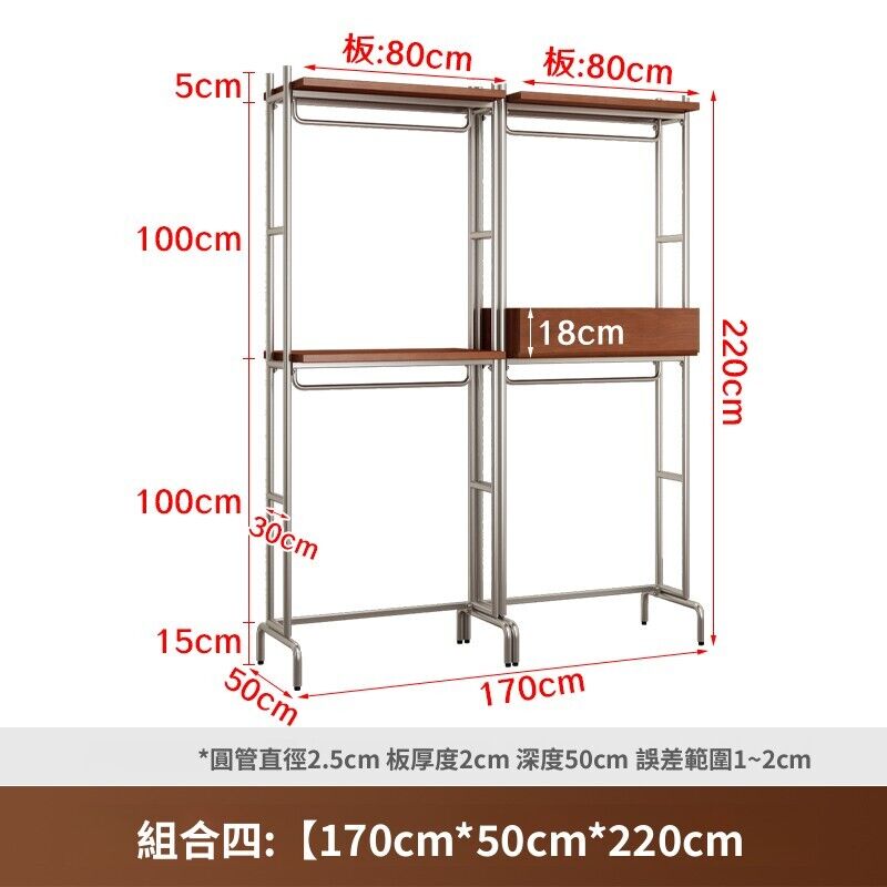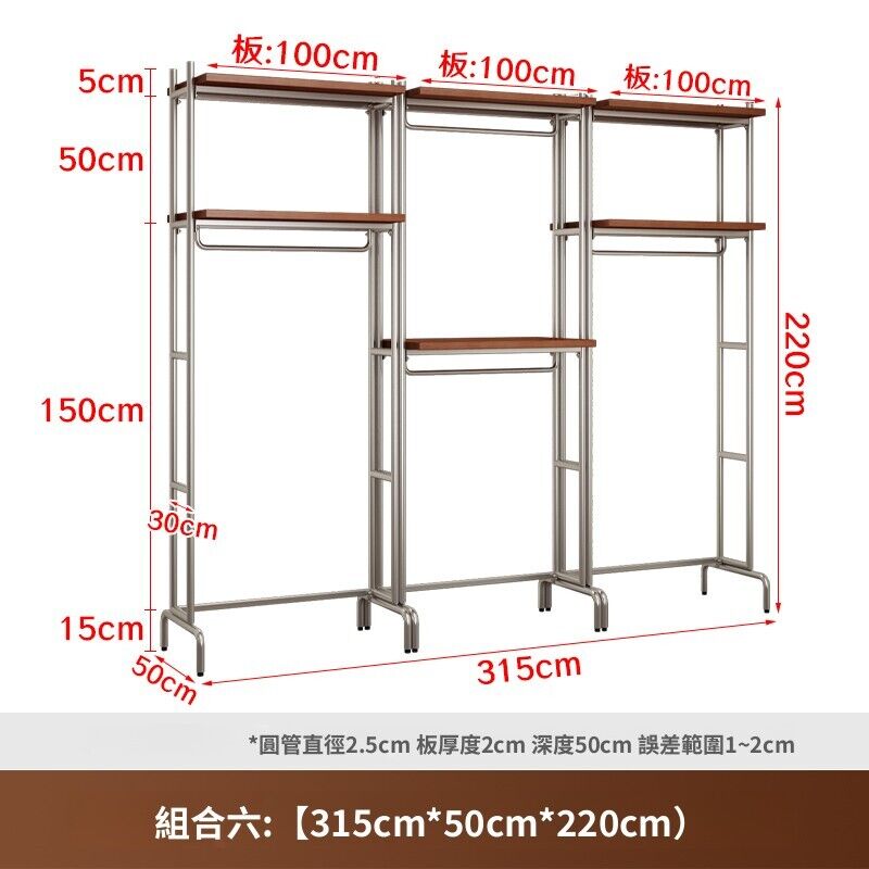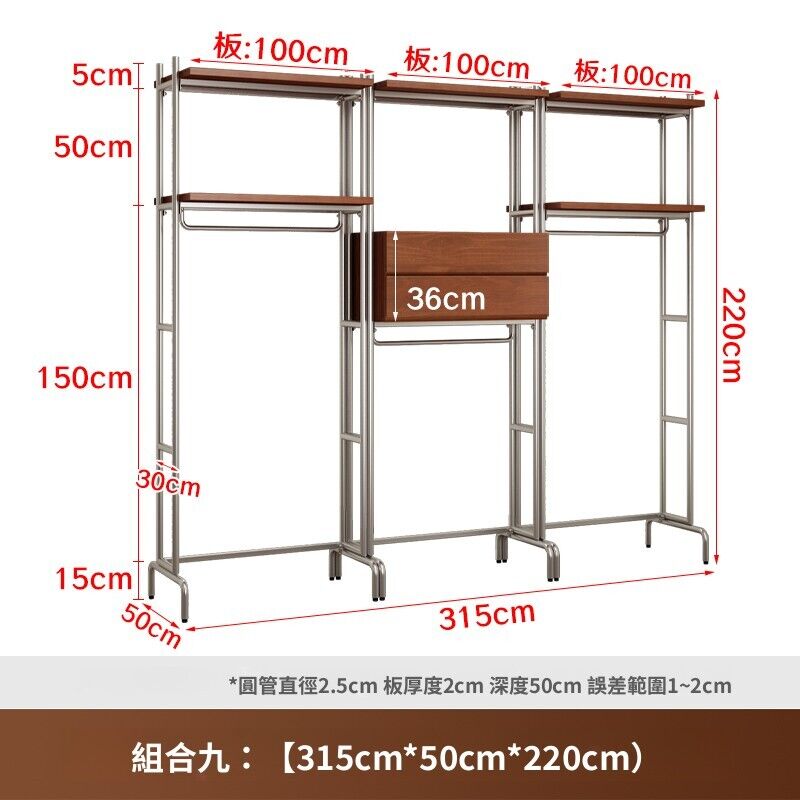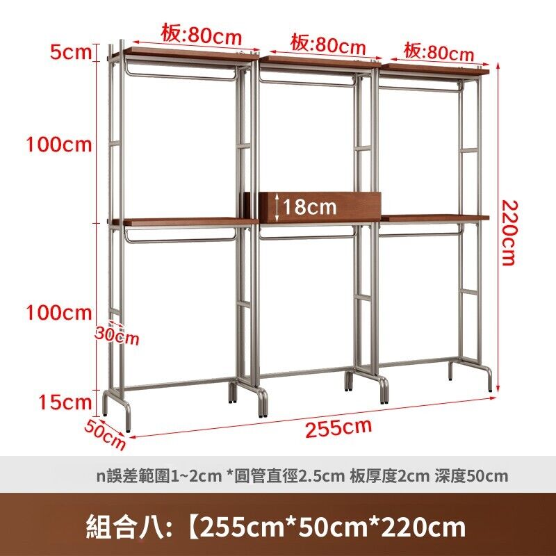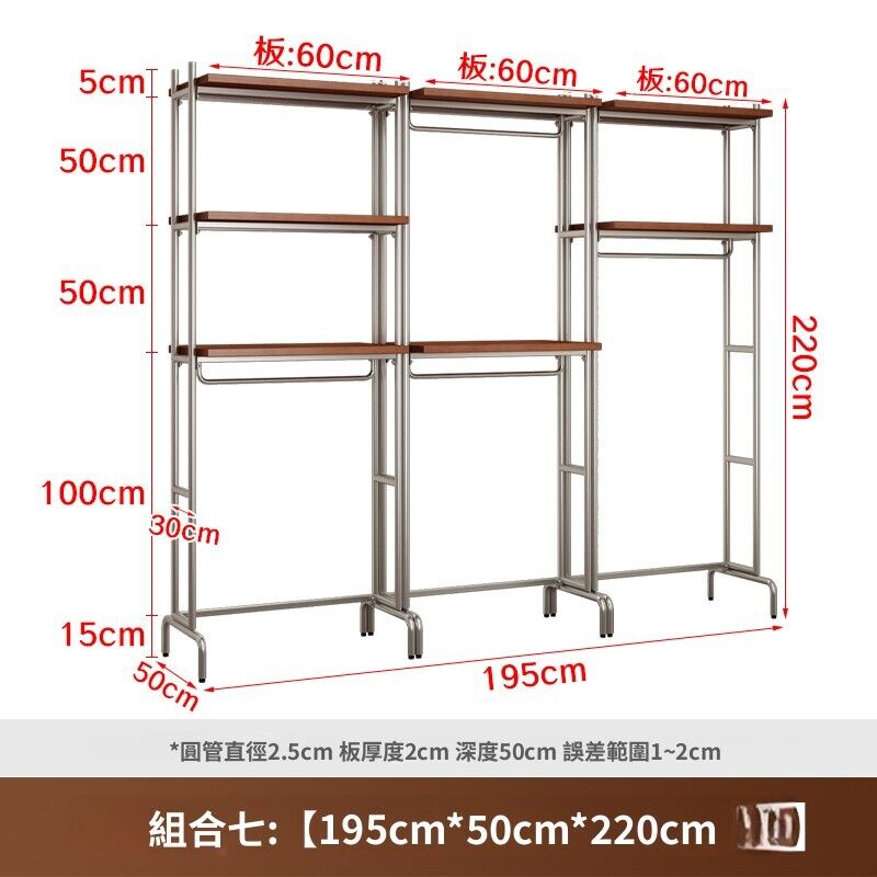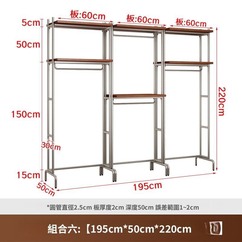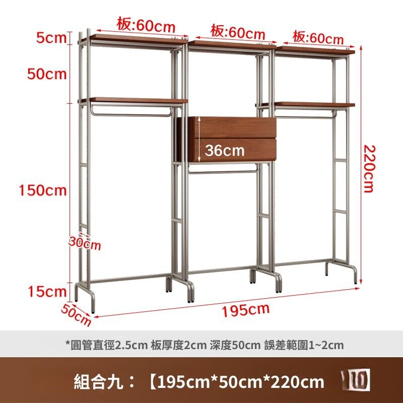 合枋 開放式衣櫃北歐鐵藝loft步入式衣架落地臥室衣櫥金屬衣帽間置物架 368