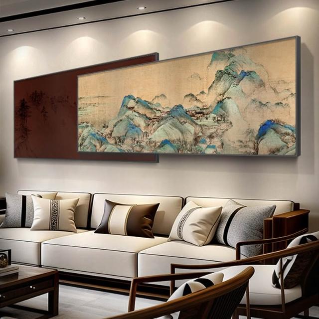 合枋 千裏江山圖 客廳裝飾畫 新中式沙發背景墻壁畫 禅意宋代美學茶室掛畫 52f