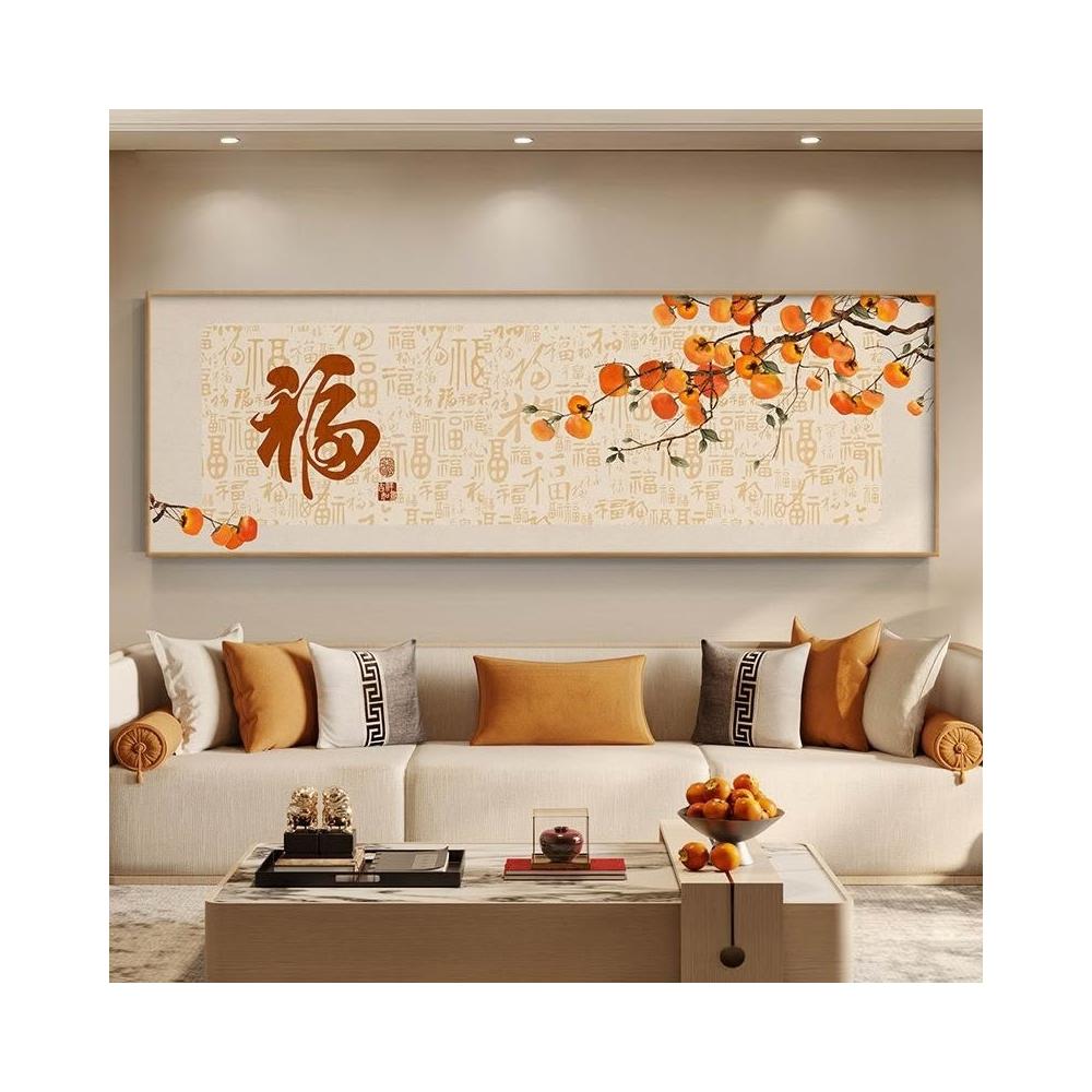 合枋 中式福字油畫 布掛畫 百福客廳裝飾畫 沙發字畫書法臥室背景墻壁畫 fff