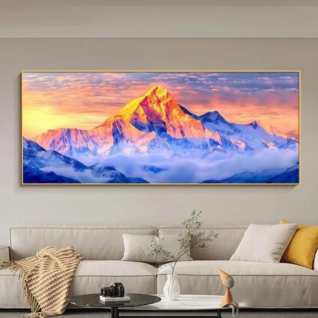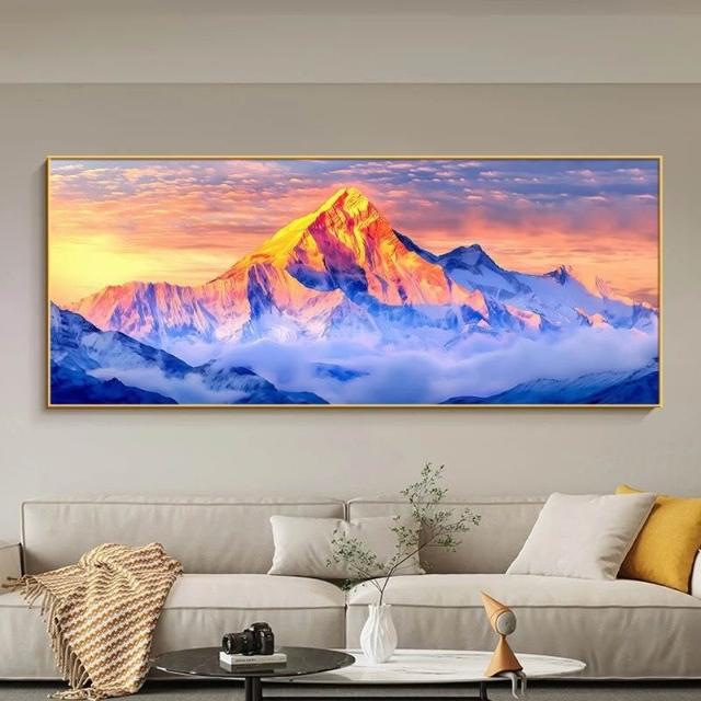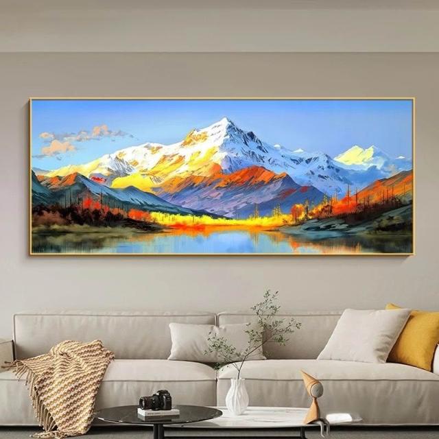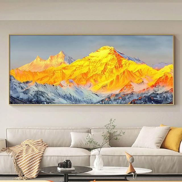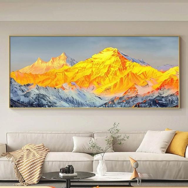 合枋 背靠金山橫版 客廳裝飾畫 有山無水辦公室沙發背景墻掛畫 輕奢壁畫 9fa