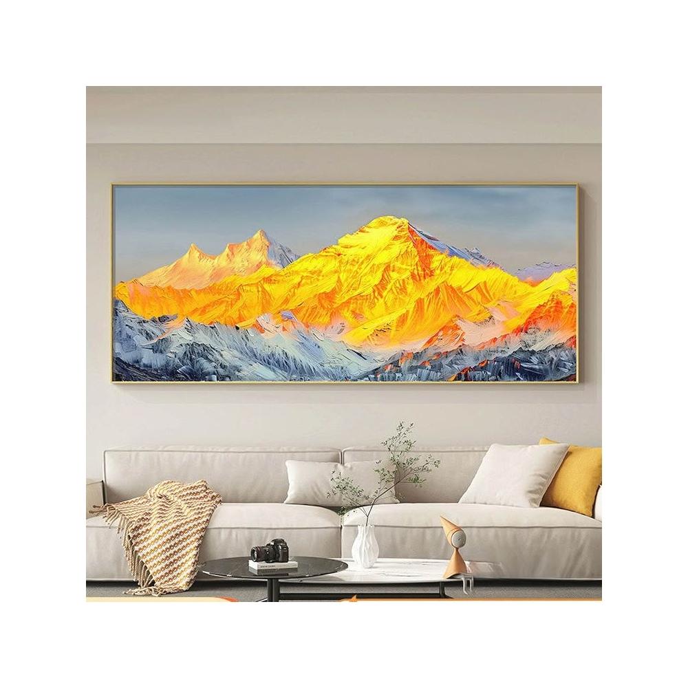 合枋 背靠金山橫版 客廳裝飾畫 有山無水辦公室沙發背景墻掛畫 輕奢壁畫 9fa