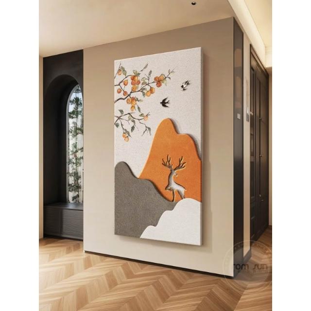合枋 柿柿如意玄關進門裝飾畫高檔立體砂巖旺財靠山客廳沙發背景墻掛畫 8bd