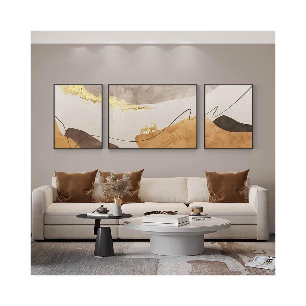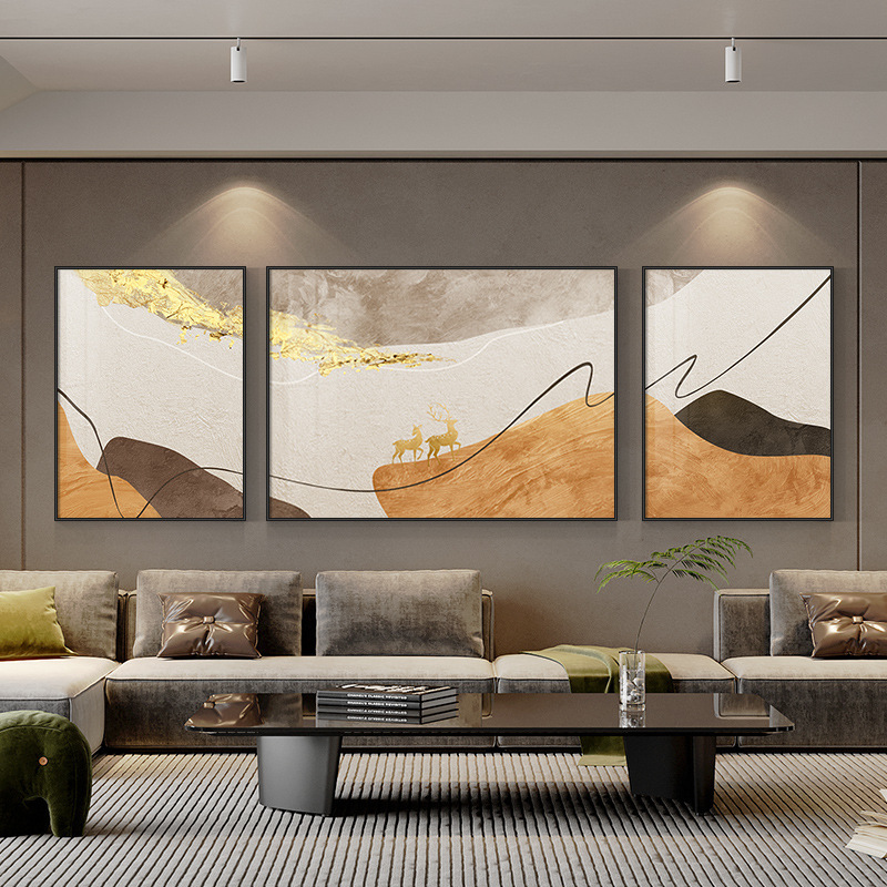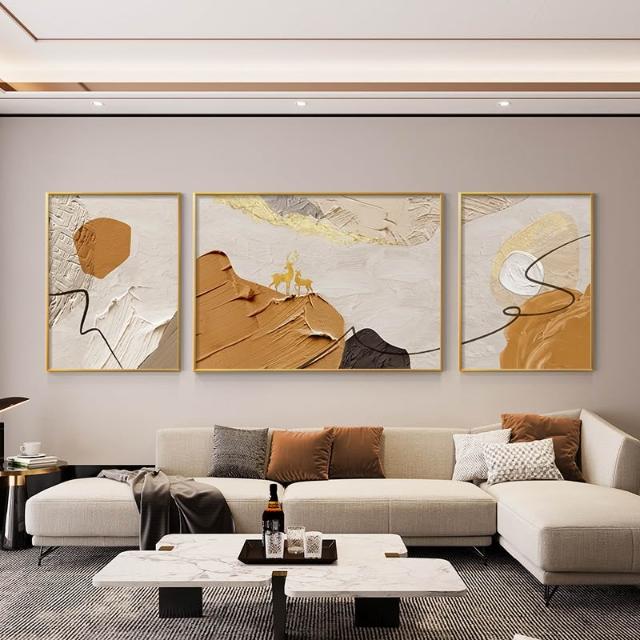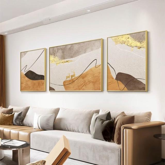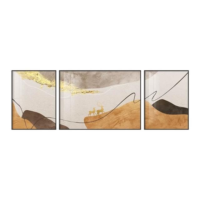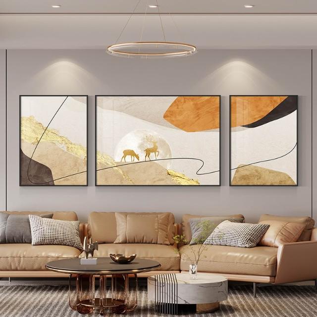 合枋 現代簡約裝飾畫客廳抽象沙發背景墻三聯掛畫有鹿生財床頭大氣壁畫 2b0