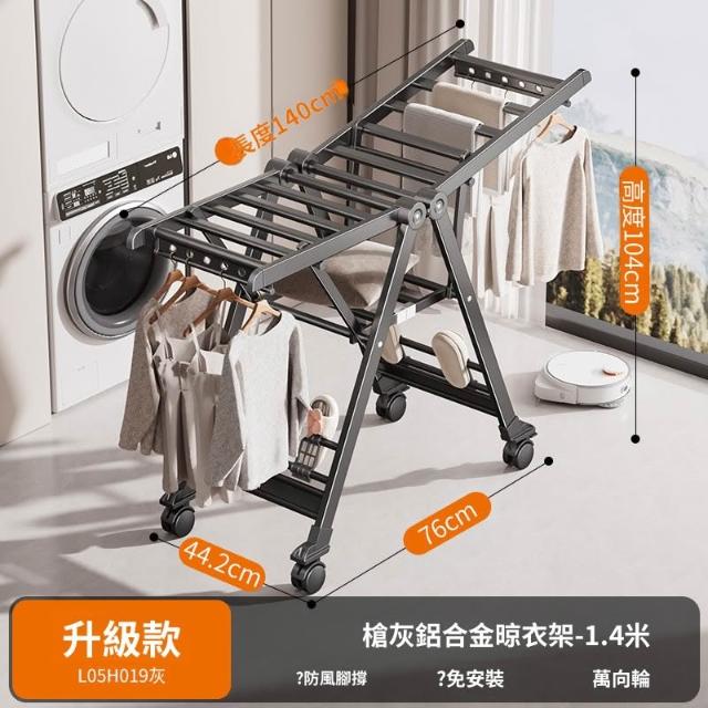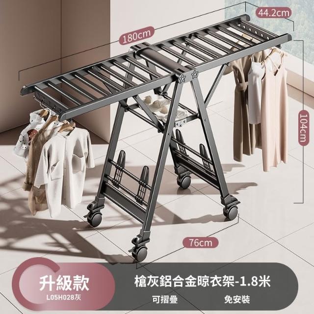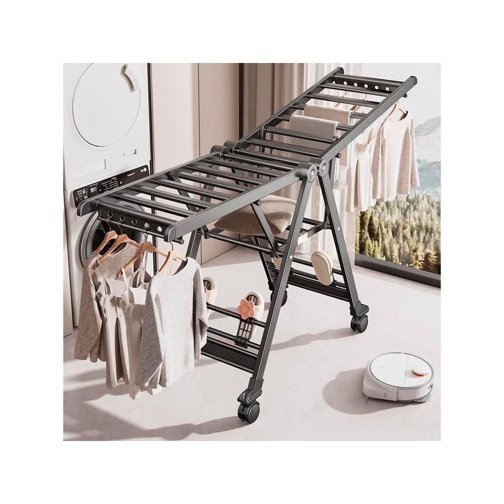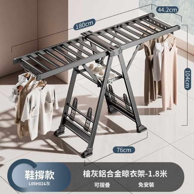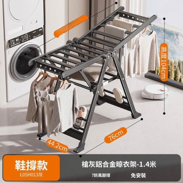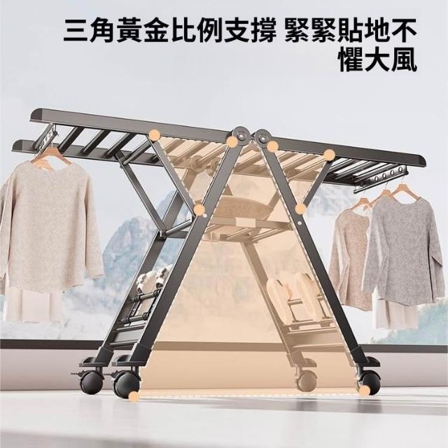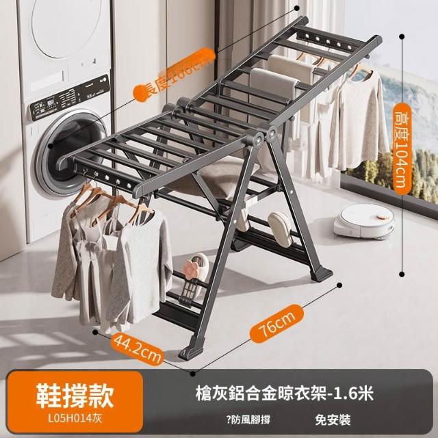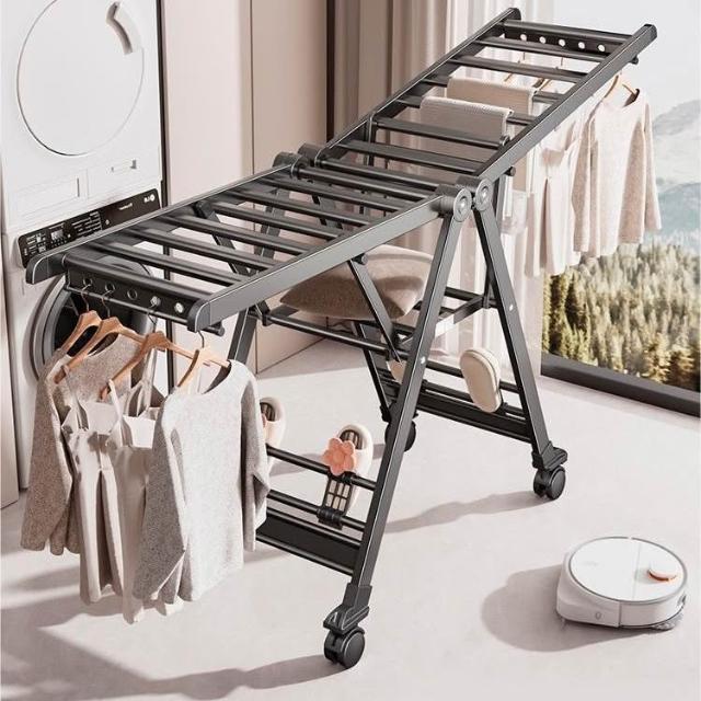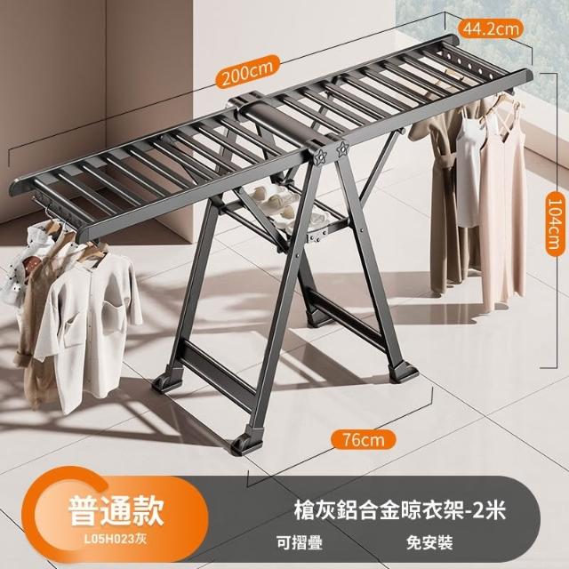 合枋 奶白色航空級折疊晾衣架家用鋁合金落地室內陽臺曬被神器晾衣桿 5ed