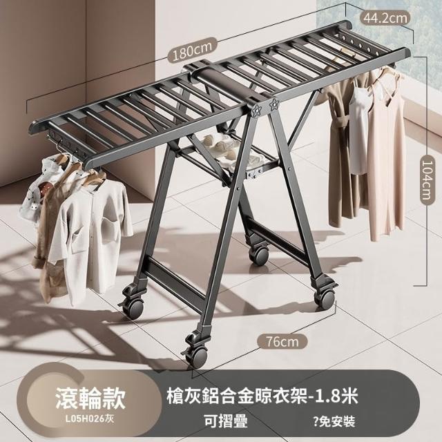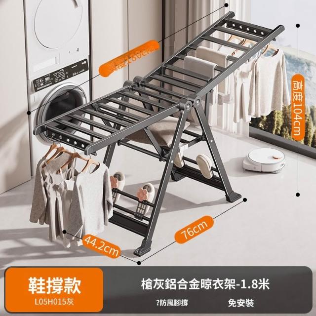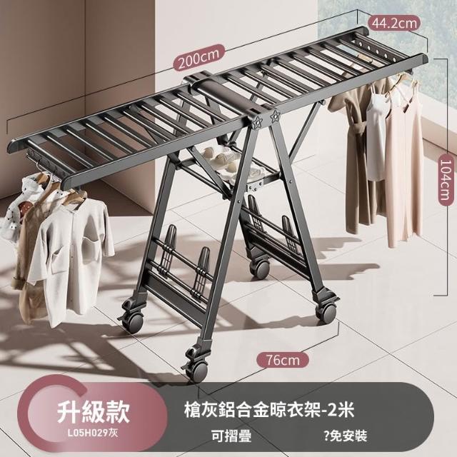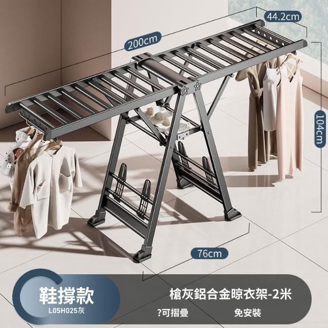 合枋 奶白色航空級折疊晾衣架家用鋁合金落地室內陽臺曬被神器晾衣桿 5ed