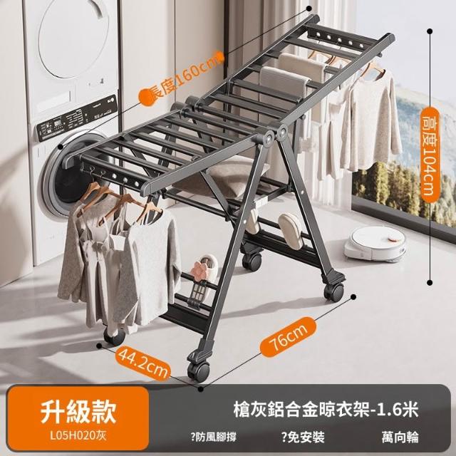 合枋 奶白色航空級折疊晾衣架家用鋁合金落地室內陽臺曬被神器晾衣桿 5ed
