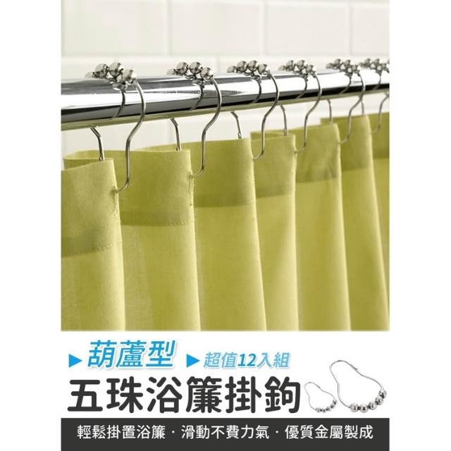 五珠浴簾掛鉤 12入 金屬浴簾勾 金屬吊環勾 葫蘆滾珠掛勾 浴簾掛勾 窗簾掛勾 窗簾勾 窗簾掛鉤