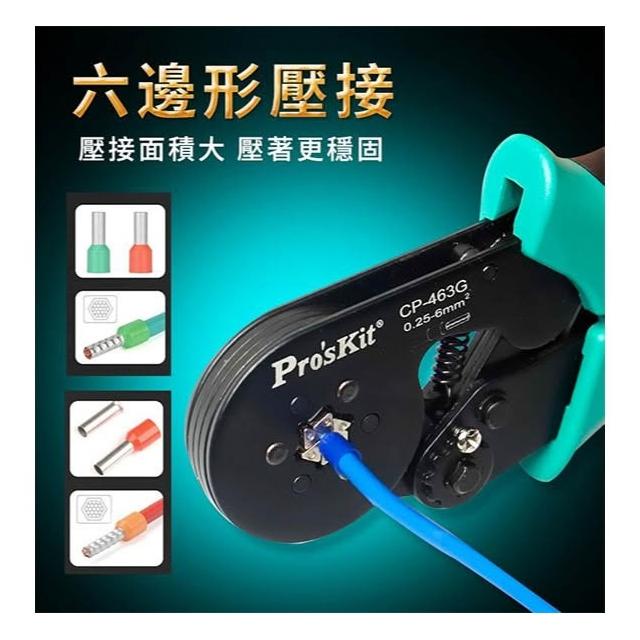 Pro’sKit 寶工CP-463G 自調式歐式管型端子壓接鉗(六邊型)