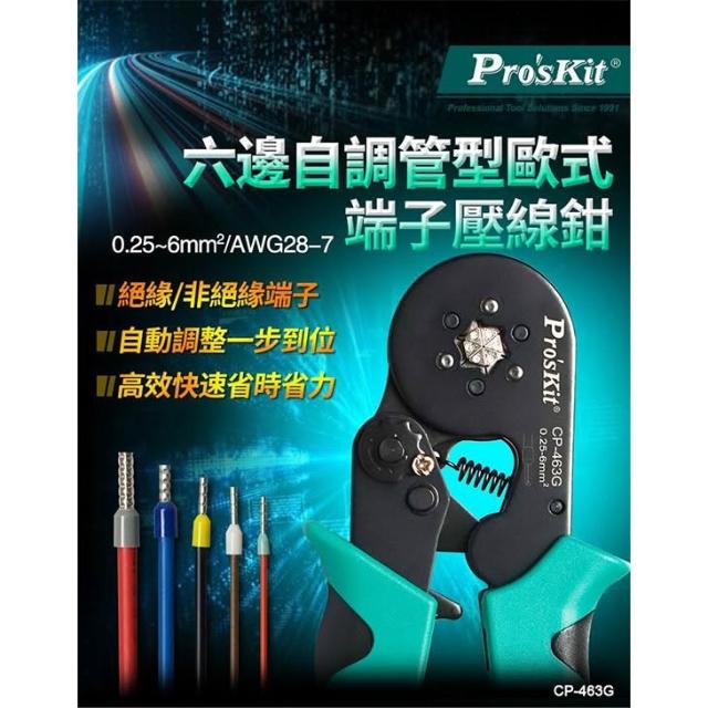 Pro’sKit 寶工CP-463G 自調式歐式管型端子壓接鉗(六邊型)