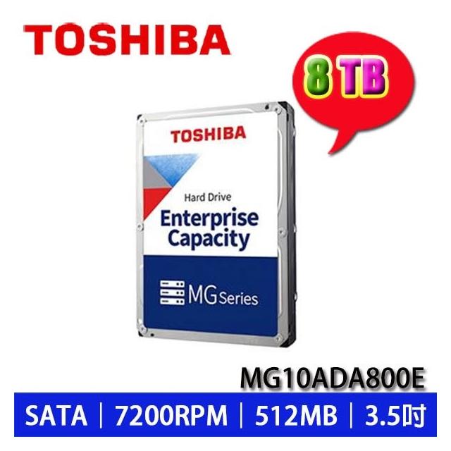 TOSHIBA 東芝MG10ADA800E 8TB 3.5吋 企業級硬碟 7200轉 512MB 5年保