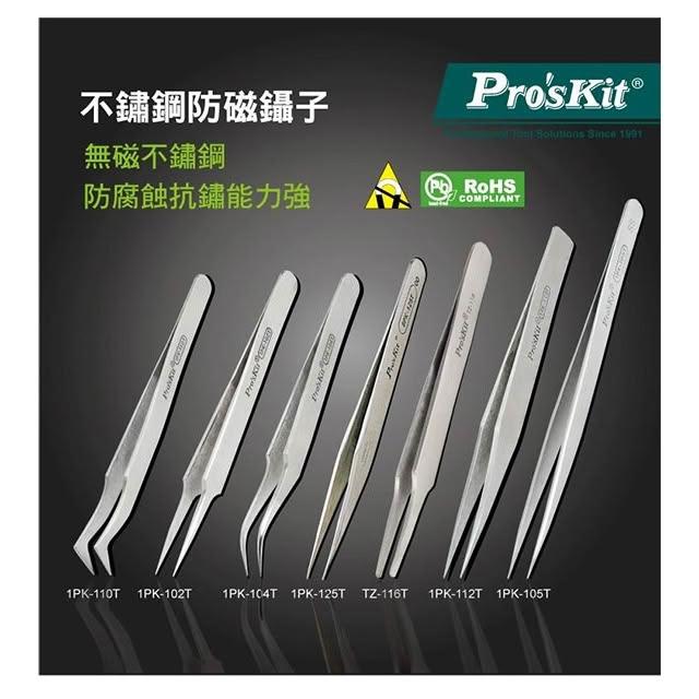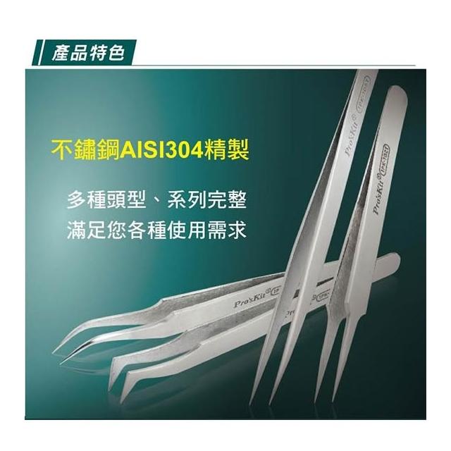 Pro’sKit 寶工1PK-112T 不銹鋼防磁圓尖鑷子