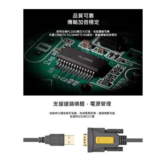 UGREEN 20223 3M USB to RS-232 RS232 訊號轉換器