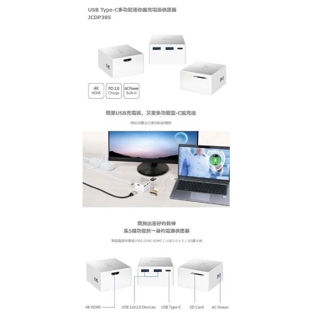 j5create 凱捷JCDP385 USB Type-C 多功能迷你擴充電源供應器