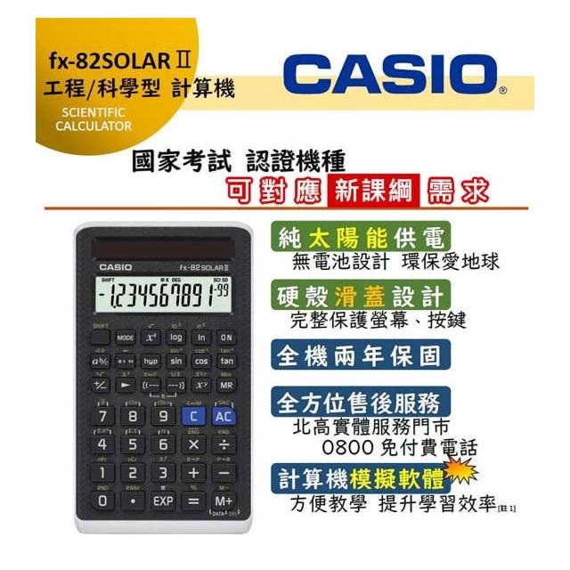 CASIO 卡西歐FX-82SOLAR II FX-82SOLARII 國家考試機型 計算機【原廠公司貨附保卡】