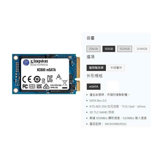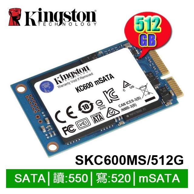 Kingston 金士頓KC600 512GB 512G mSATA SSD固態硬碟 SKC600MS/512G