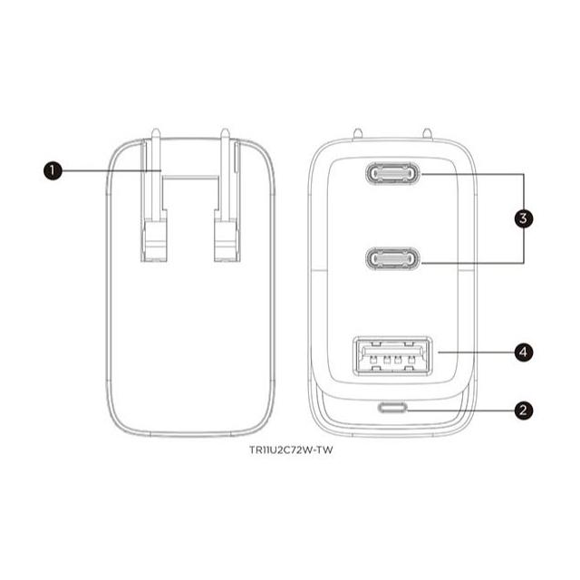 CyberPower72W Type-C/USB 氮化鎵智慧三孔 快速充電器(TR11U2C72W-TW)