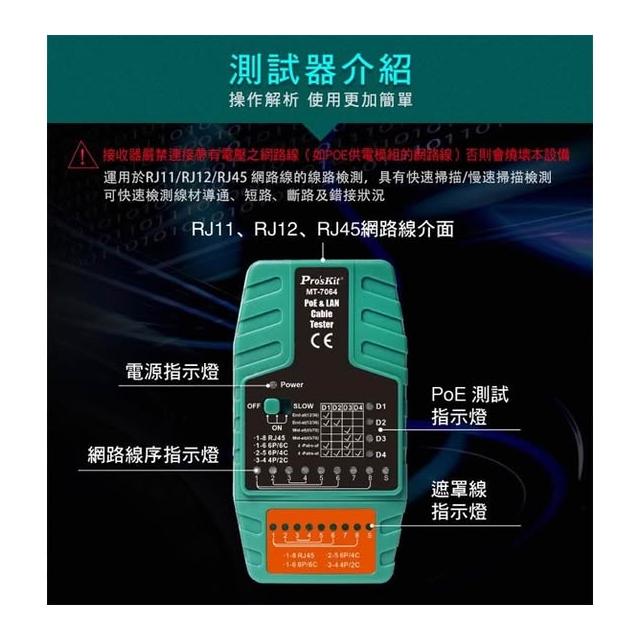 Pro’sKit 寶工MT-7064 POE 及 RJ45 網路測試器