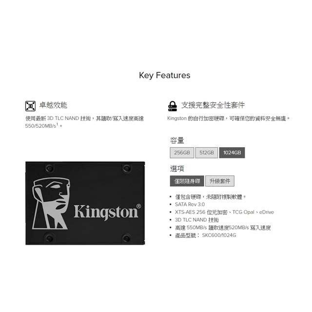 Kingston 金士頓KC600 1TB 1T SATA SSD固態硬碟 3D TLC