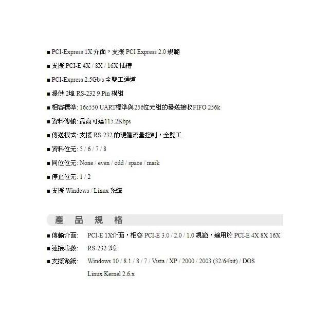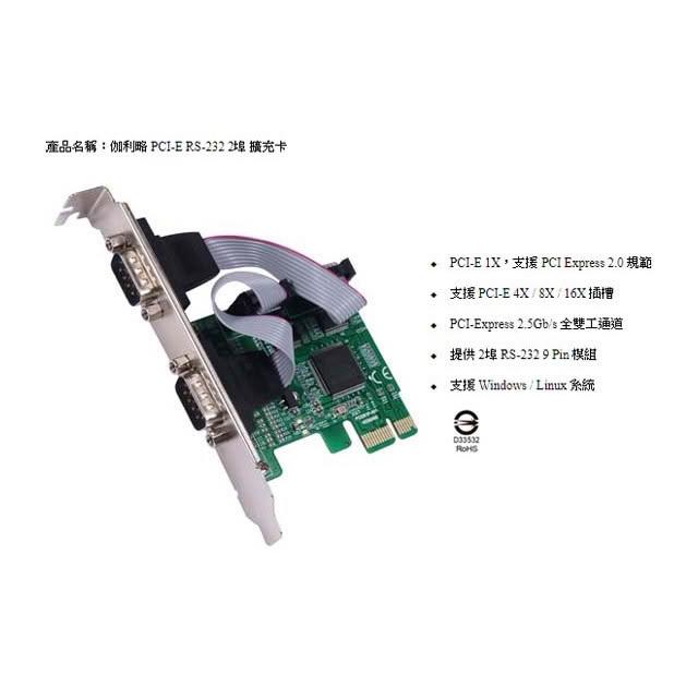 伽利略PETR02A 2-port PCI-E RS232擴充卡