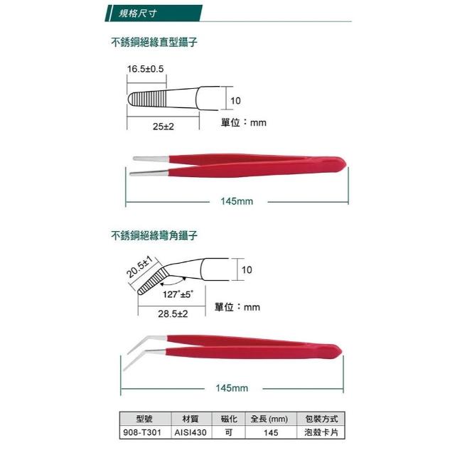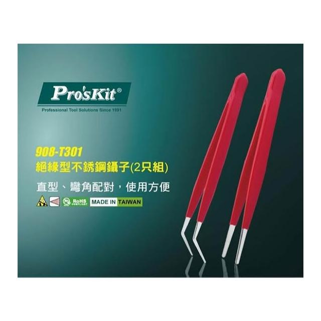 Pro’sKit 寶工908-T301 絕緣型不銹鋼鑷子(2支組)