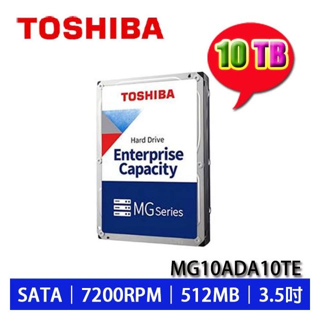 TOSHIBA 東芝MG10ADA10TE 10TB 3.5吋 企業級硬碟 7200轉 512MB 5年保