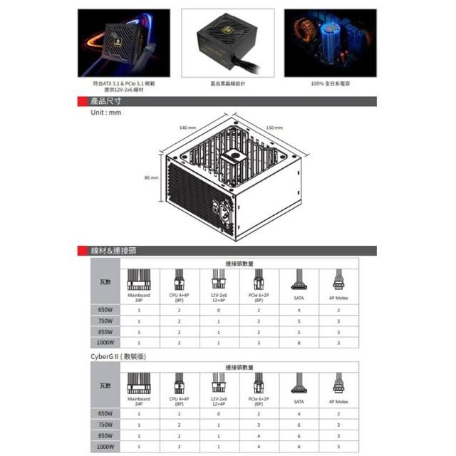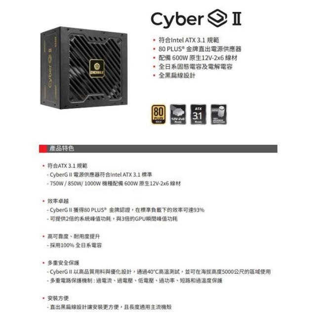 ENERMAXCyberG II 750W ATX3.1 金牌 直出線 電源供應器
