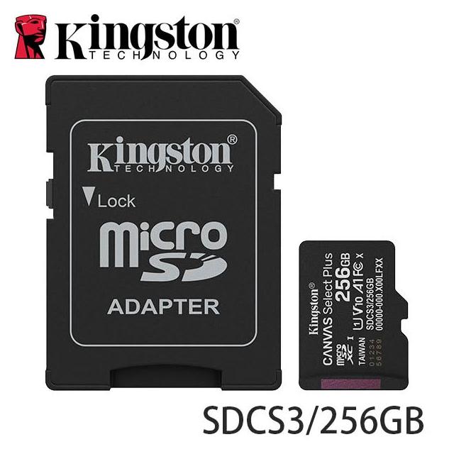 Kingston 金士頓SDCS3 256GB 150MB Canvas Select Plus micro SDXC 記憶卡 含SD轉卡