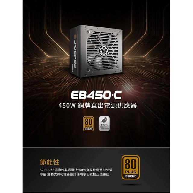 ENERMAX450W EB450-C 80PLUS銅牌 直出線 ATX3.1 電源供應器
