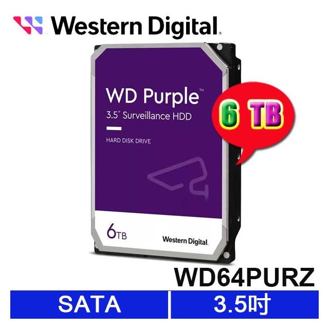 Western DigitalWD 紫標 6TB 3.5吋監控系統專用硬碟 WD64PURZ