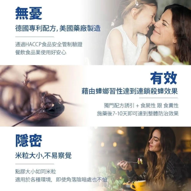 - 小強剋星,據蟑螂飲食習慣設計
