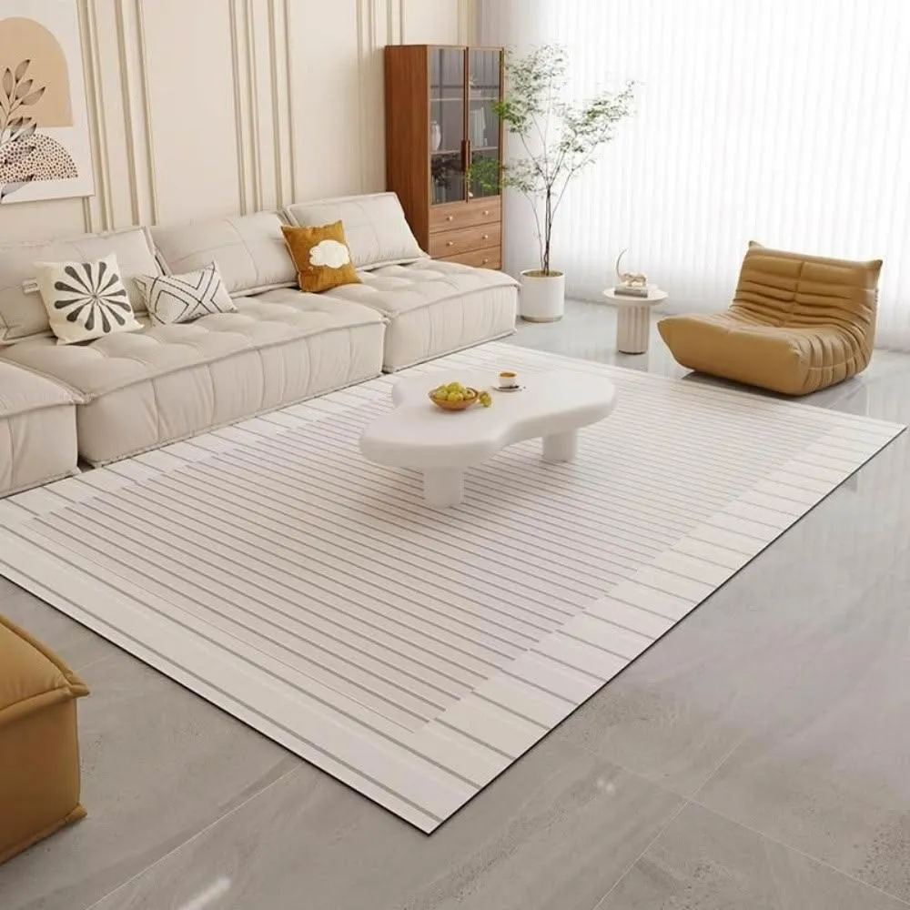 輕奢耐臟客廳地墊 pvc防水大地毯 防水可擦免洗地墊 簡約奶油風臥室墊子 茶幾毯 沙發大地毯