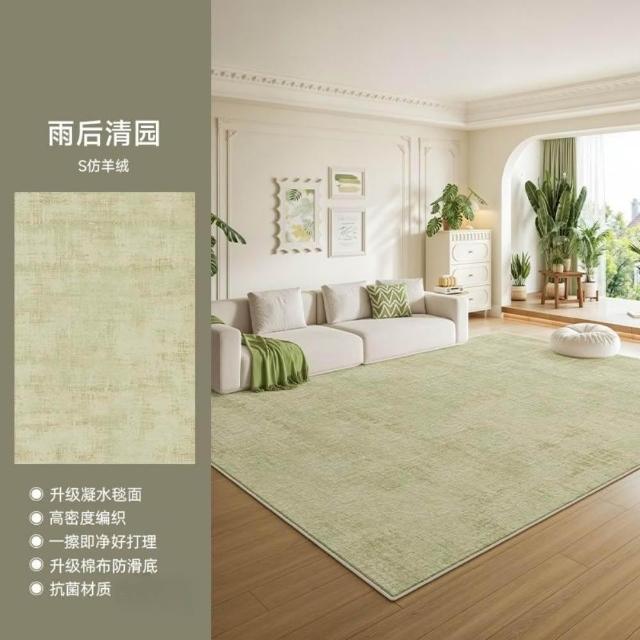 輕奢防水耐臟大地毯 客廳地毯 綠色新款免洗地墊 臥室床邊地毯 輕奢高級防水防汙沙發地墊
