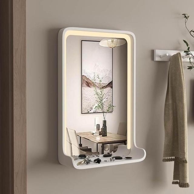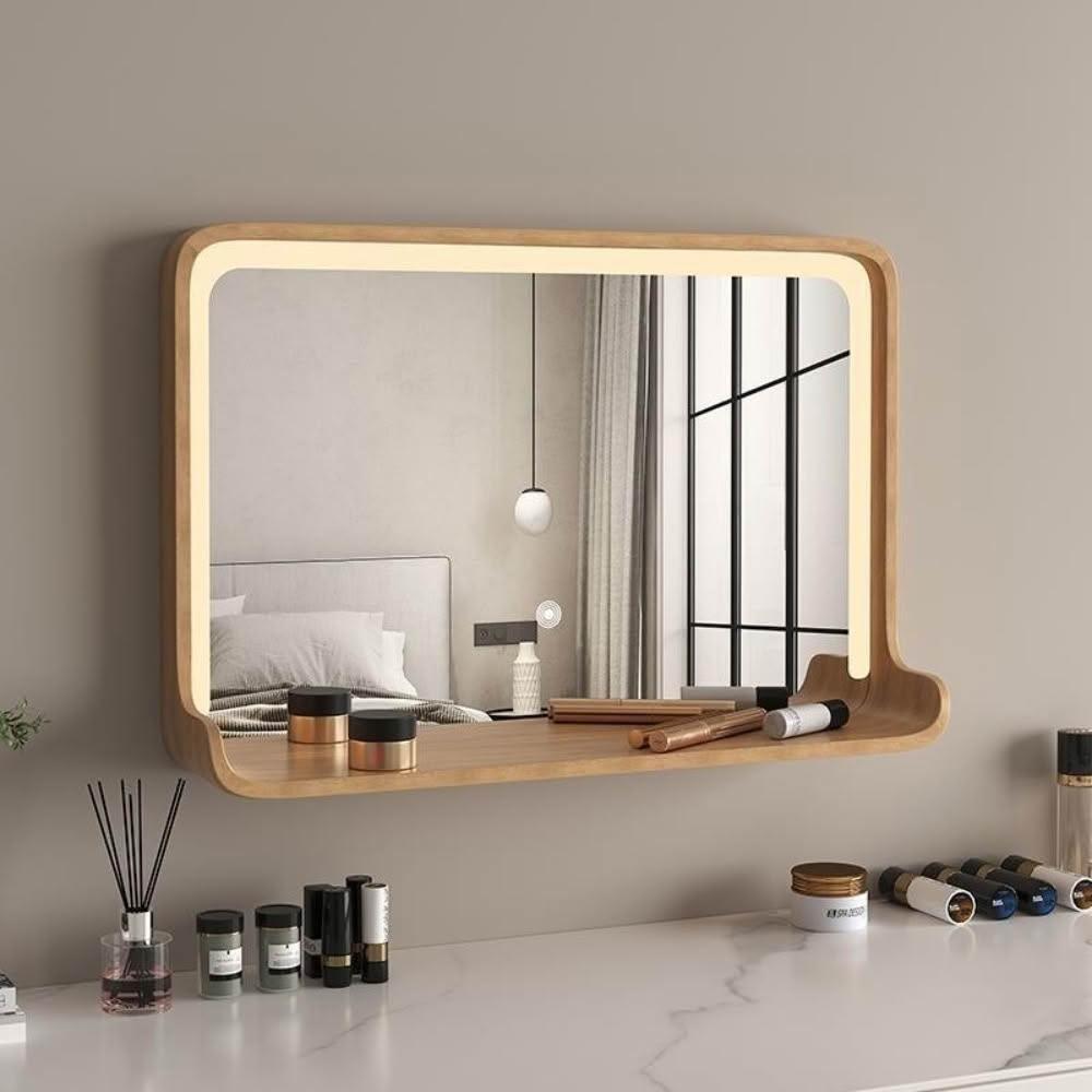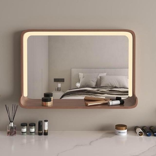 歐美風新款浴室鏡子 輕奢浴室鏡 實木鏡子 衛生間鏡子 廁所鏡子 化妝鏡 壁掛 洗手臺led燈鏡子