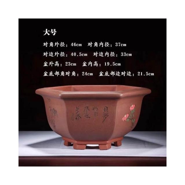 古風大口徑紫砂花盆 宜興紫砂花盆 大口徑六方花盆 特大號六角透氣盆栽 精品陶瓷 花盆 陶瓷盆 陶瓷花盆 大花盆