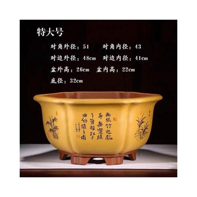 古風大口徑紫砂花盆 宜興紫砂花盆 大口徑六方花盆 特大號六角透氣盆栽 精品陶瓷 花盆 陶瓷盆 陶瓷花盆 大花盆