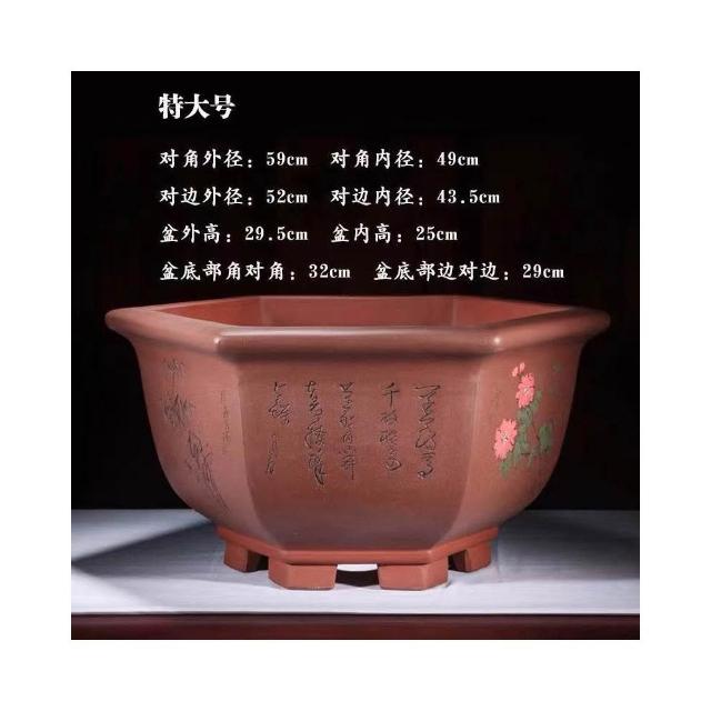 古風大口徑紫砂花盆 宜興紫砂花盆 大口徑六方花盆 特大號六角透氣盆栽 精品陶瓷 花盆 陶瓷盆 陶瓷花盆 大花盆