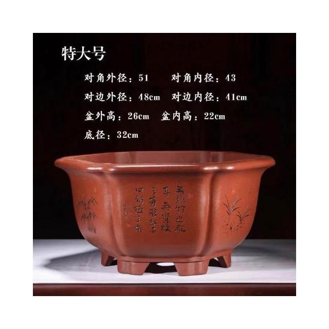 古風大口徑紫砂花盆 宜興紫砂花盆 大口徑六方花盆 特大號六角透氣盆栽 精品陶瓷 花盆 陶瓷盆 陶瓷花盆 大花盆