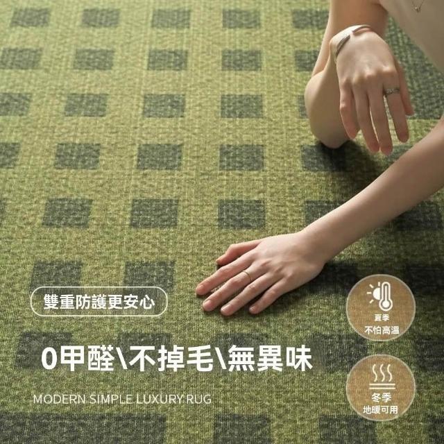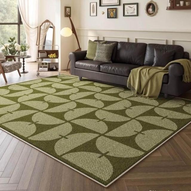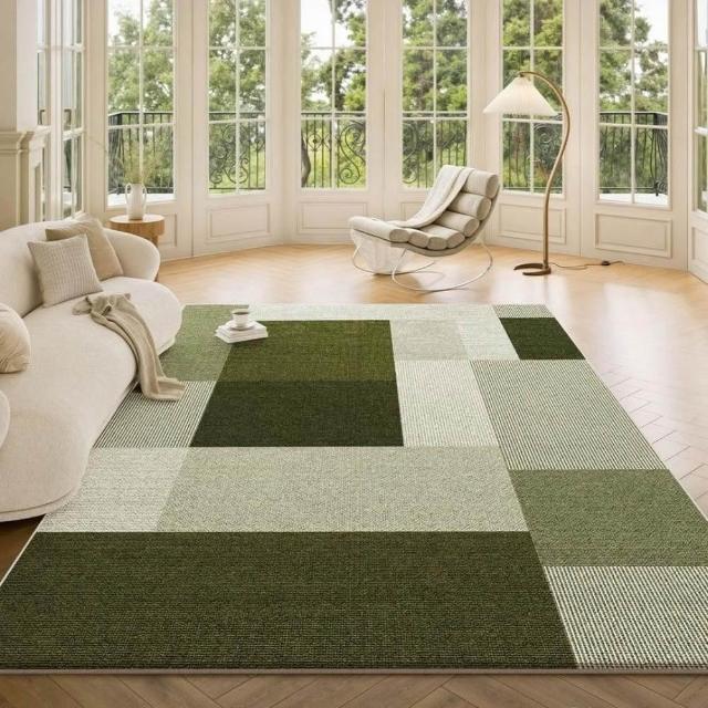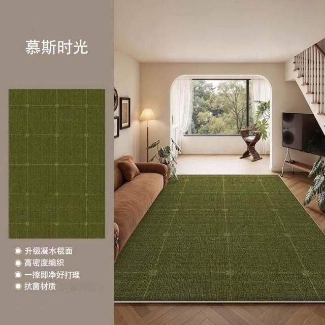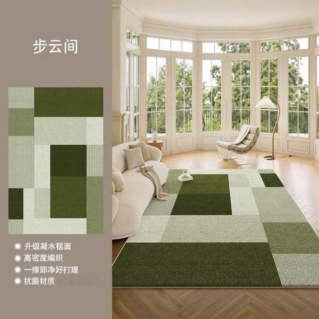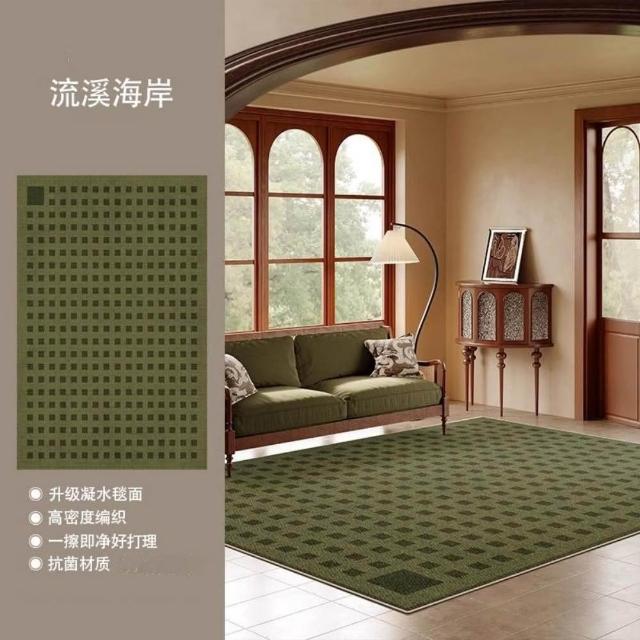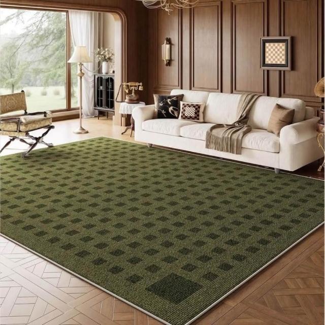 加厚免洗仿羊絨地毯 綠色客廳大地毯 中古風綠色地毯 免洗地墊 可擦洗防水綠色地毯 茶幾沙髮地墊 格子地毯