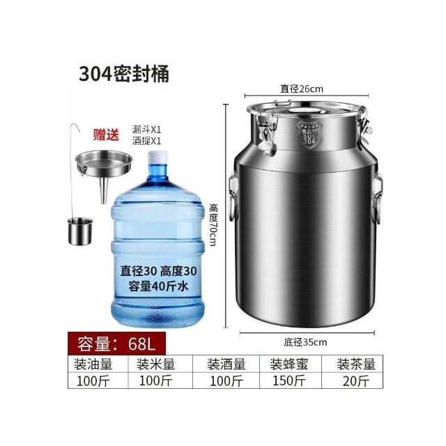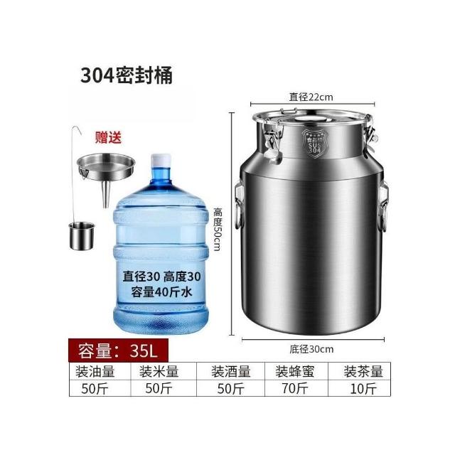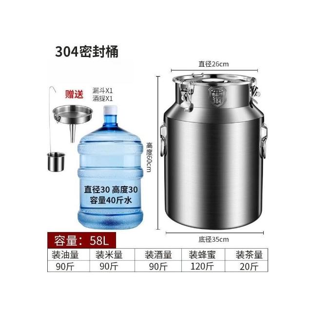加厚304密封不鏽鋼酒桶 304不鏽鋼油桶 密封罐 大口徑易清潔 商用酒桶 牛奶運輸桶 家用茶葉罐 米桶 食用油桶