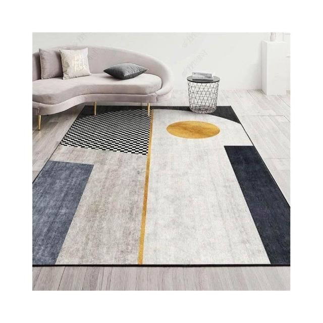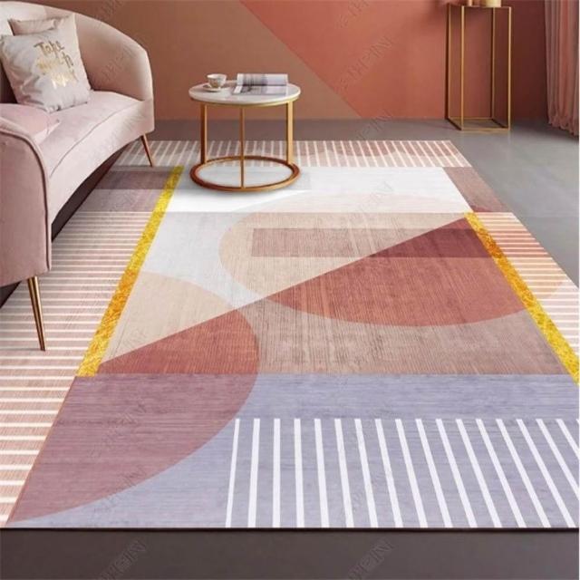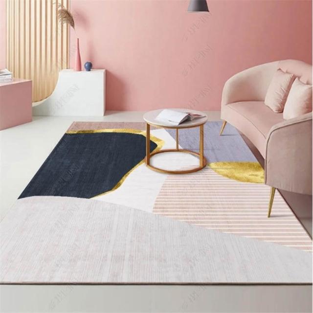 輕奢幾何圖案地毯 簡約弧綫綫條地毯 客廳地毯 現代風家用INS幾何風格全鋪茶幾地墊 臥室地墊 滿鋪房間地墊 地毯